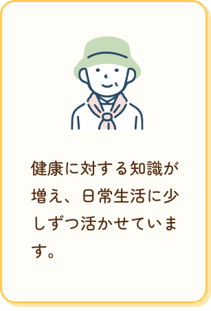 健康に対する知識が増え、日常生活に少しずつ活かせています。